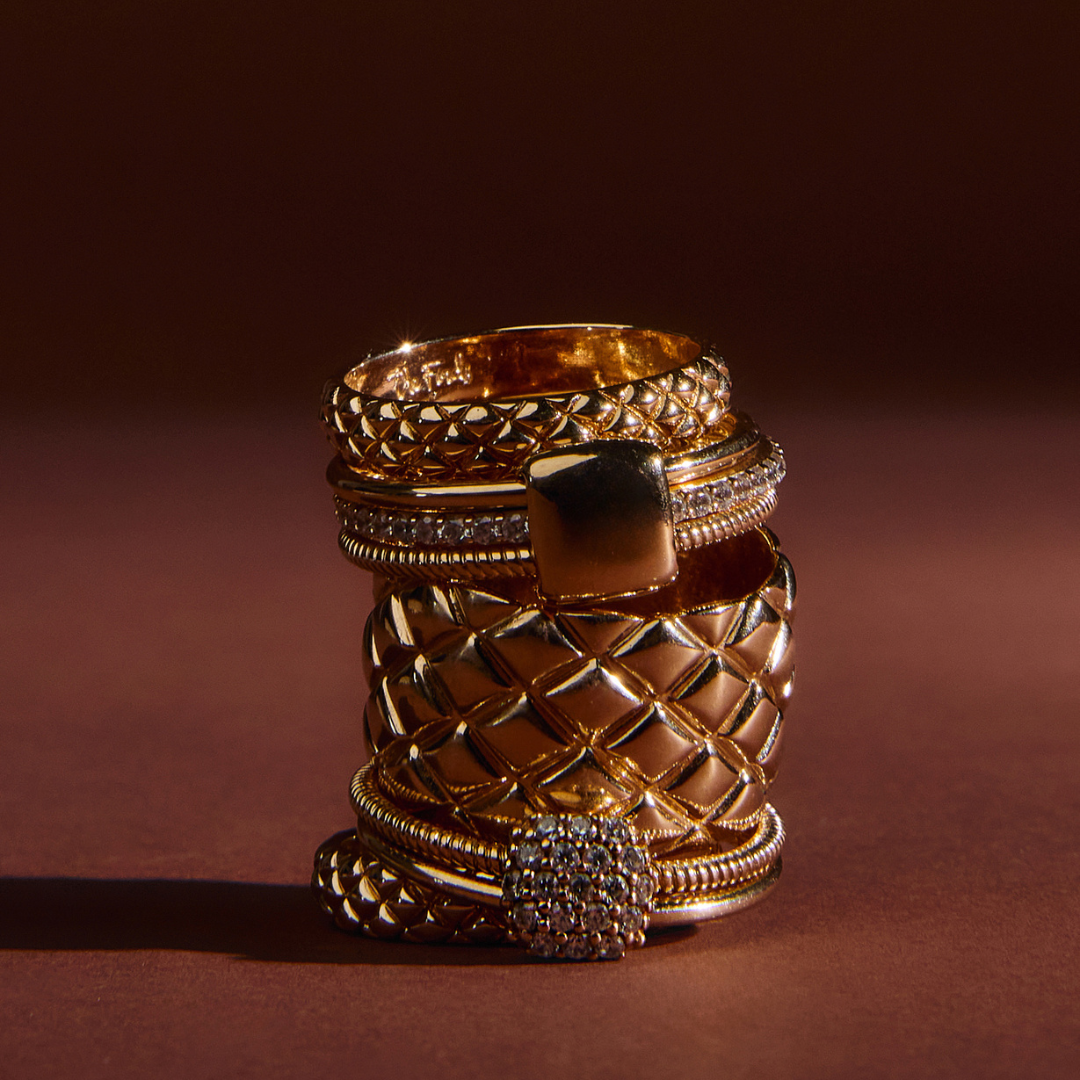 Nicht jedes vergoldete Schmuckstück ist gleich. Wir entwerfen jedes Stück so, dass es die Zeit überdauert – und seinen Glanz behält.